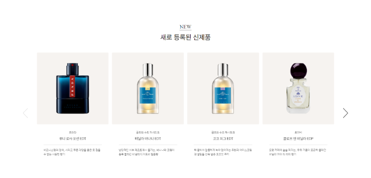 조말론 사이트의 슬라이더 부분입니다.